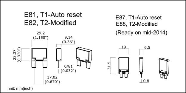 Fast power protection, users can reset manually and automatically reset, ATC type push-in terminal design, Can replace disposable fuses, widely used in the automotive modification and maintenance market. Cross to Bussmann 19X, MINI CIRCUIT BREAKERS Rating: T1: 8-50A, 14Vdc T2&T3: 8-50A, 28Vdc Interrupt Rating: 150A@14Vdc (for 8-10A) 225A@14Vdc (for 15A) 300A@14Vdc (for 20A) 450A@14Vdc (for 25, 30A) 600A@14Vdc (for 35, 40A) 750A@14Vdc (for 50A) Operating Tempeature rating: -40℉(-40℃) to 185℉(85℃) Stortage Temperature rating : -40℉(-40℃) to 260℉(125℃) Marking: Type / Amp / Voltage Termination:Compatible with fuse blocks using MAXI Compliance: SAE J553 |